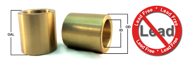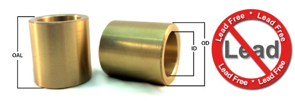 Lead Free Cast Bronze Bushings can be utilized in applications where standard cast bronze bushings would be used but a lead free alloy is preferred or required - Tensile Strength (min) 65 KSI, Yield Strength (min) 25 KSI, Elongation (min) 8%, Brinell Hardness (500 lb load) 103